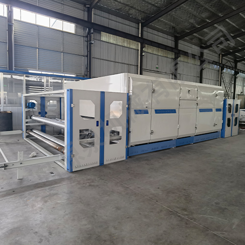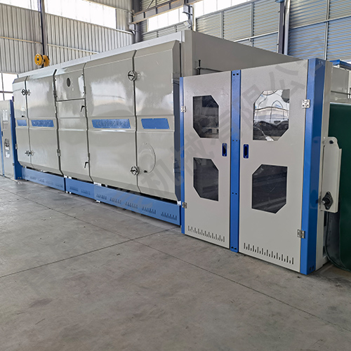 通過(guò)本機(jī)作用可生產(chǎn)無(wú)膠棉、仿絲棉等,產(chǎn)品廣泛應(yīng)用于服裝、繡品、床上用品、家私、旅游產(chǎn)品等。該機(jī)器可采用1臺(tái)燃燒器加熱或電加熱,循環(huán)風(fēng)機(jī)將熱風(fēng)經(jīng)風(fēng)道穿透對(duì)流,上吹下吸,從而達(dá)到最大節(jié)能效果,而且三層網(wǎng)帶單獨(dú)傳動(dòng),各主傳動(dòng)采用變頻控制。(可根據(jù)客戶需求定制)