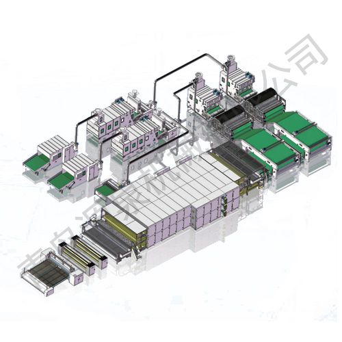 噴膠棉設備主要生產(chǎn)高彈噴膠棉、仿絲棉。熱熔、材等上膠、烘干、定型之用、設置前后(正反)噴膠,三層烘燥工作區(qū)。該產(chǎn)品廣泛應用于服裝、床上用品、家具等。該生產(chǎn)線可根據(jù)客戶需求定制不同配置的生產(chǎn)線,如頭噴膠棉生產(chǎn)線,多機頭噴膠生產(chǎn)線等。